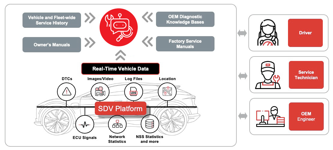 - コンテクスチュアル・インテリジェンス:リアルタイム車両データとOEM固有のリソースを活用し、直感的なチャットボットインターフェースを通じて、状況に応じた正確なインタラクションを提供します。