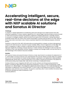 This case study discusses how NXP’s scalable AI solutions and Sonatus AI Director enable real-time, edge-based decision-making in vehicles.